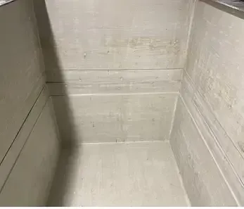 Our client was a very high end private property with a single GRP tank for the boosted water system. The tank was suffering from gel coat deterioration leading to osmotic blistering with black pin mould growth.