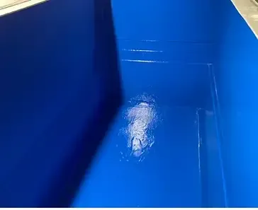 All joints had a ‘stripe coat’ of DWPU applied, to build up a nominal thickness of 3 – 5mm in these critical areas. This was followed by a base coat of DWPU applied to all internal surfaces at a nominal thickness of 500 micron.