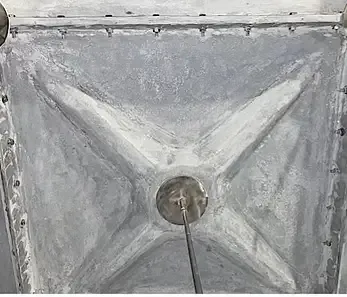 The hollow lid supports were replaced, excess mastic removed and the internal surfaces abraded to achieve a 75um surface profile to accept the coating.
