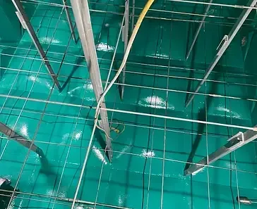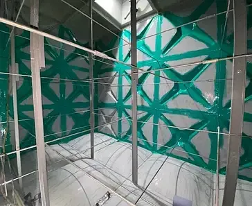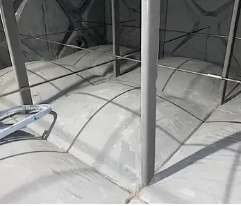 All joints had a ‘stripe coat’ of DWPU applied, to build up a nominal thickness of 3 – 5mm in these critical areas. This was followed by a base coat of DWPU applied to all internal surfaces at a nominal thickness of 500 micron.